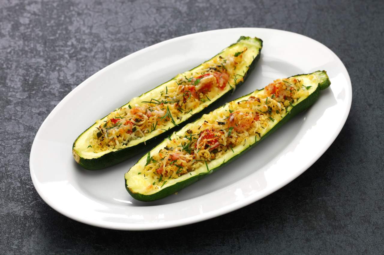 Receita de abobrinha recheada com quinoa, mussarela e tomate
