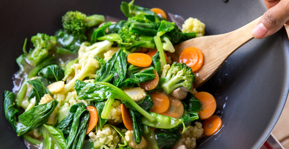 Já vegetais verde-escuros, como rúcula, brócolis e couve, são ricos em cálcio e ferro, um mineral presente na carne vermelha.